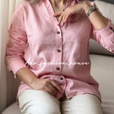 شومیز لینن یقه هفت صورتی٣٣٢