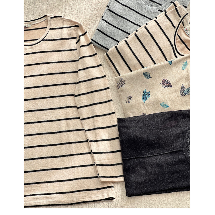 سايز بندى سه طرح راه راه كرم و طوسى و طرح برگ: