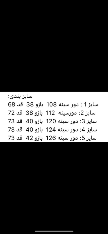 سایز لارج:دور سینه 120 بازو40 قد 73