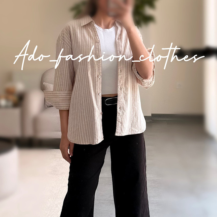 شومیز لینن کرم راه راه ٢٠٧