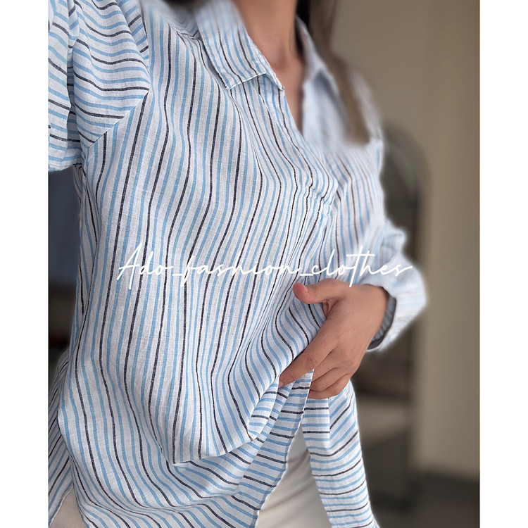 شومیز لینن راه راه ظریف جلو بسته ٢٠٨