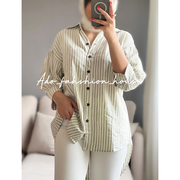 شومیز لینن راه راه سبز ٢٢٨