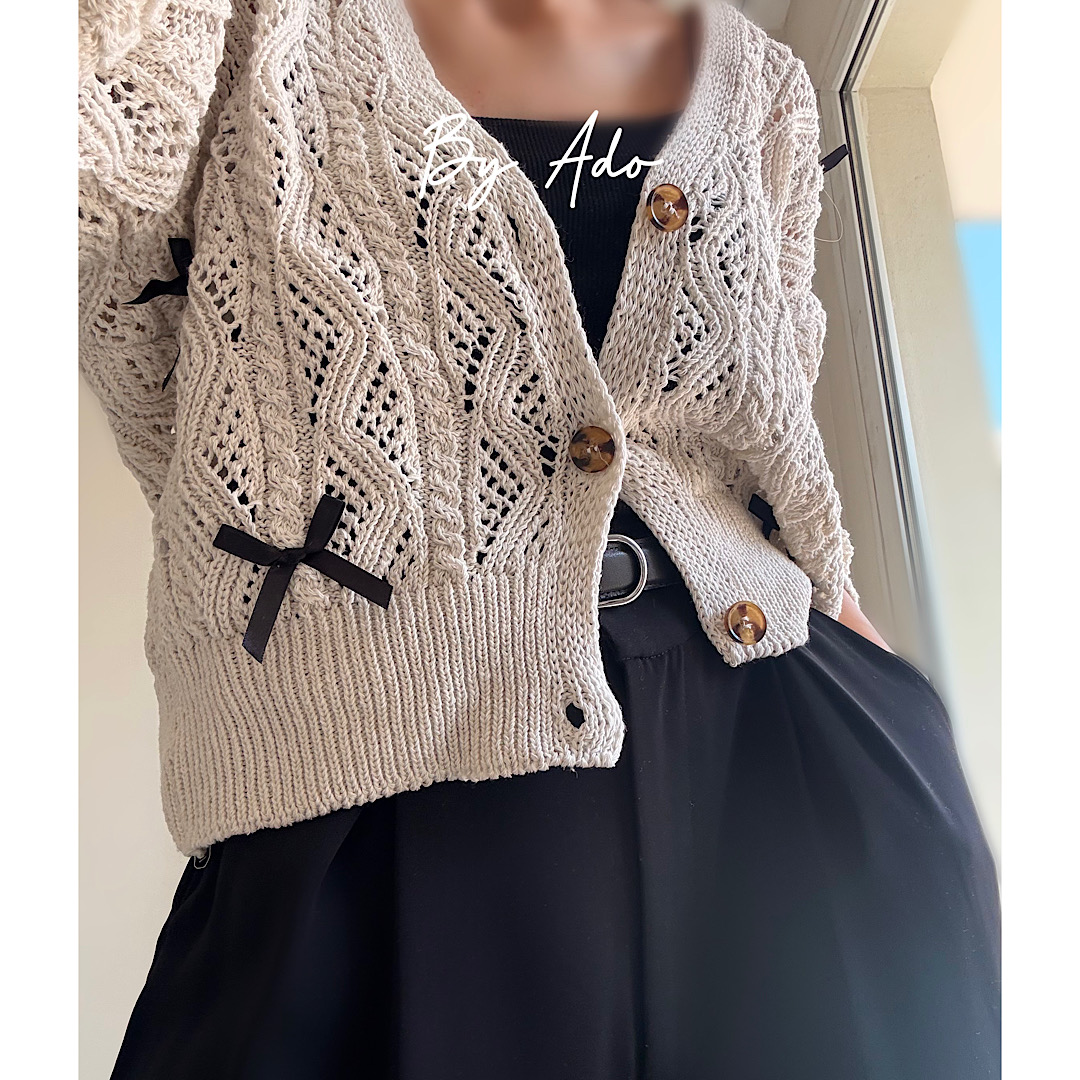سلامليكم به آدو خوش اومدي ♥️🫶🏻 بريم سراغ اين كارديگان جذاب پاپيوني كه اسمشو گذاشتم روژان 😍 ووووووووولى خيلي خيلي محدوده 🥲🫠 كارديگان بافت فيري سايزه دور سينه اش حدودا ١١٠ هست كه كش مياد و تا سايز ٤٤-٤٢ مناسبه قدش حدودا ٤٨ هست