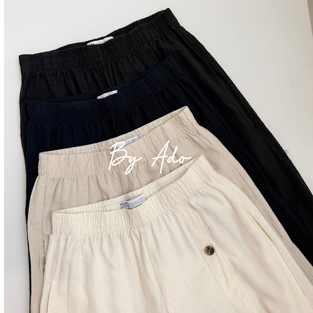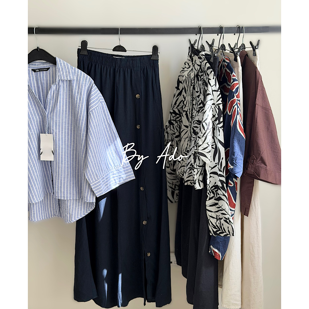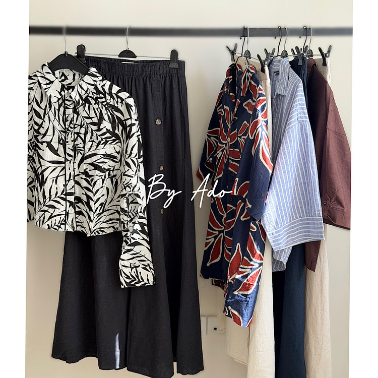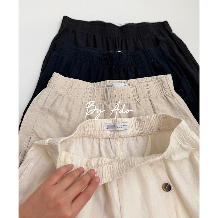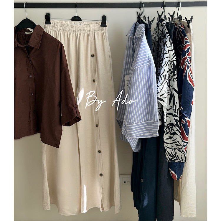 جنسش لينن هست ٤ تا رنگ داره ، سايز بندي داره ، يكي از رون هاش كاملا تا بالا دكمه ميخوره كه دكمه هاش باز ميشه