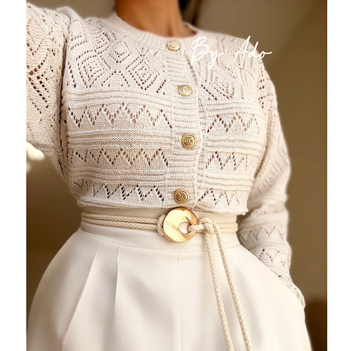کاردیگن یقه گرد دکمه طلایی ٥٩٣