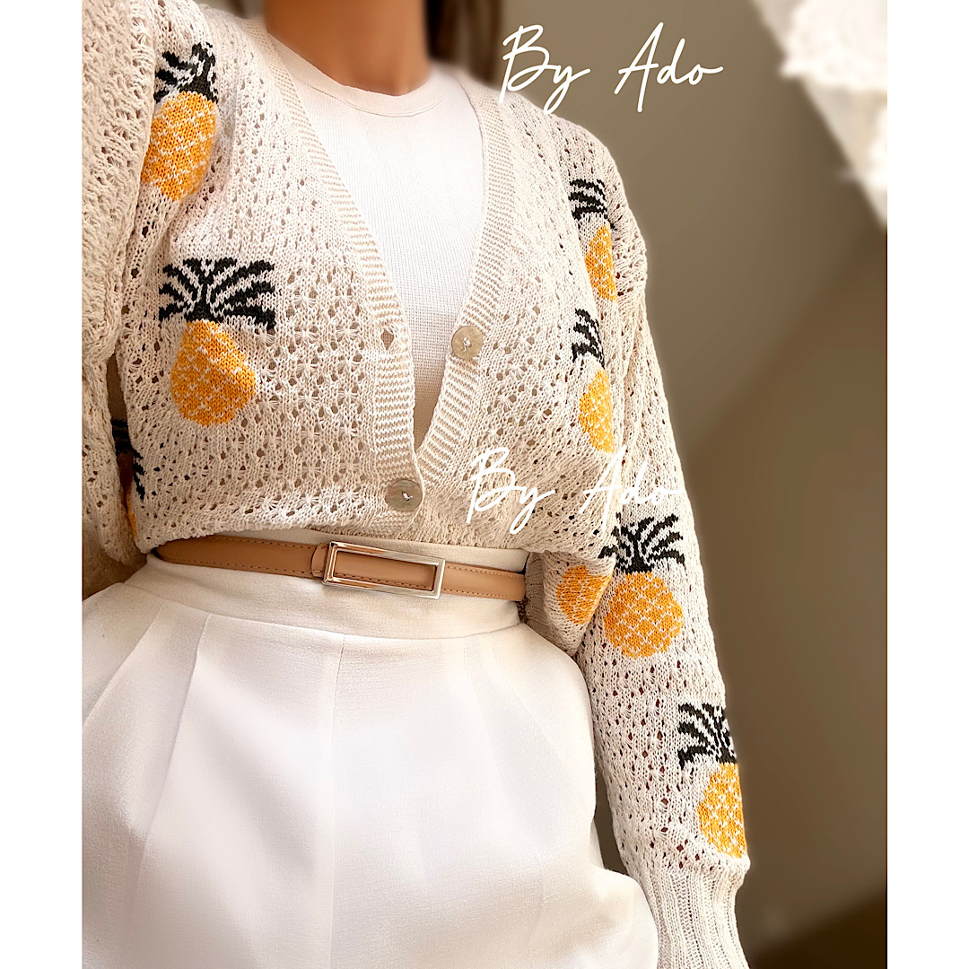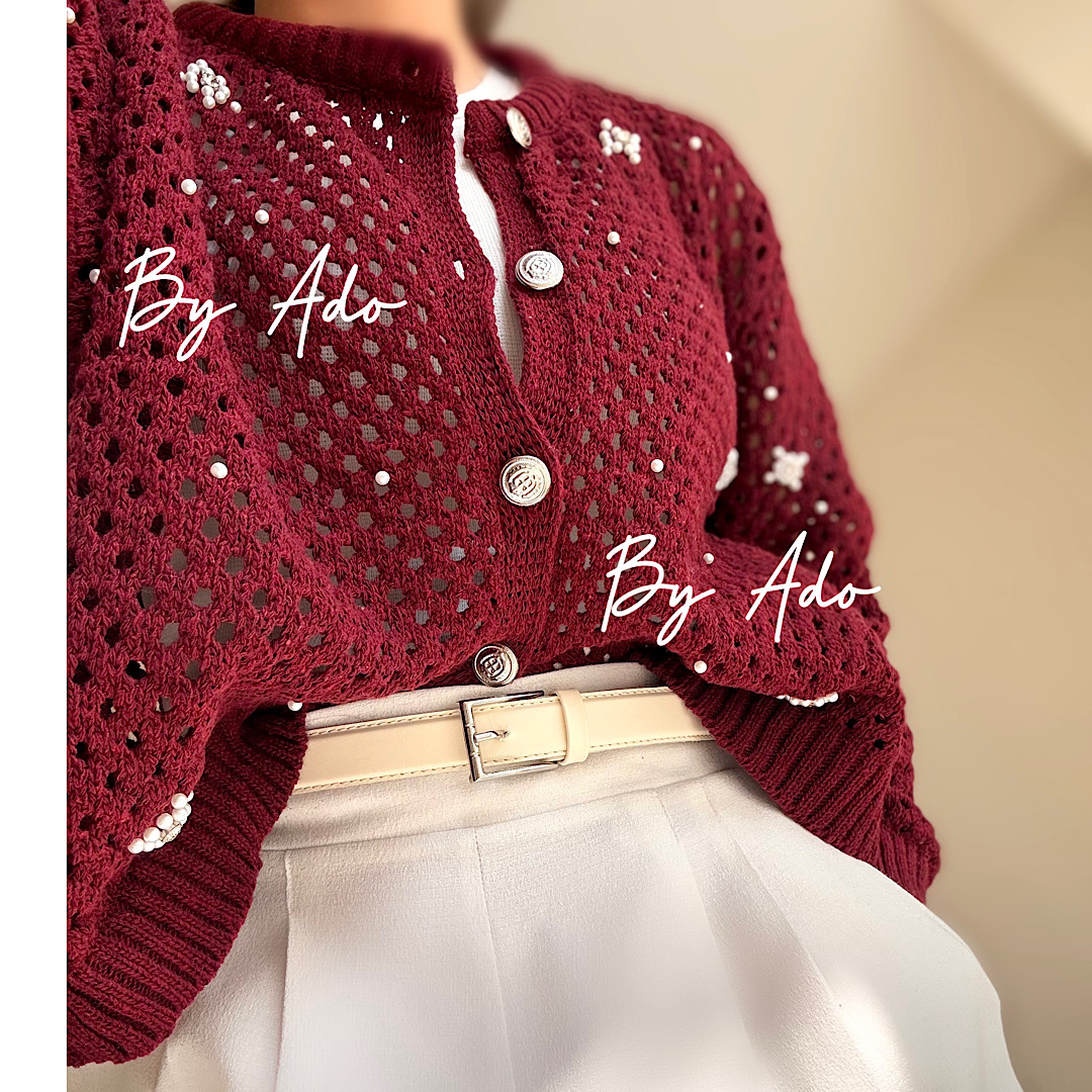 کاردیگن یقه گرد دکمه طلایی ٥٩٣